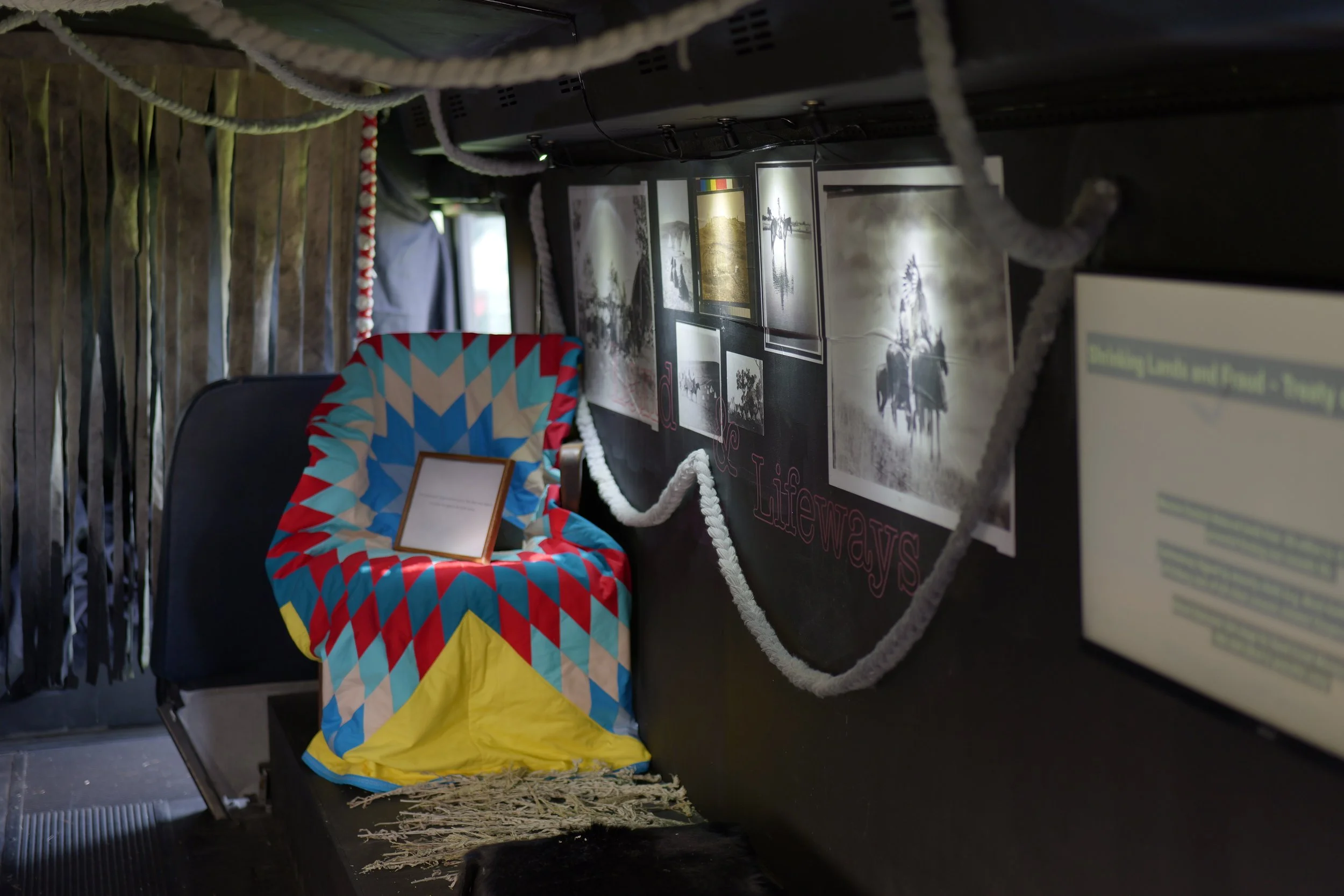 The Breathing Healing Bus is a mobile immersive experience in and around Control Group’s event bus. It offers a crucial counter-narrative to the “year of celebration” of Colorado statehood and U.S. nationhood called for by the 250 - 150 initiative, addressing the hard history of genocide, forced removal, and ongoing marginalization of Native Americans that define our nation’s and state’s history. It unpacks pivotal moments in the multi-century orchestrated campaign of erasure, inviting reflection on this history through an embodied and personally invested experience combining visual design, oral histories, healing meditations, and interactive prompts.